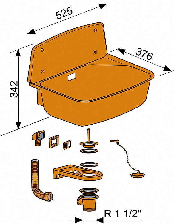 • Komplett mit Ablaufventil DN 40 (1 1/2"), Sieb, Standrohr-Trichter aus Kunststoff und Befestigungsset