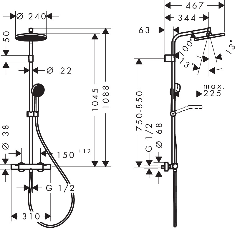 - Brausearmlänge Kopfbrause: 344 mm